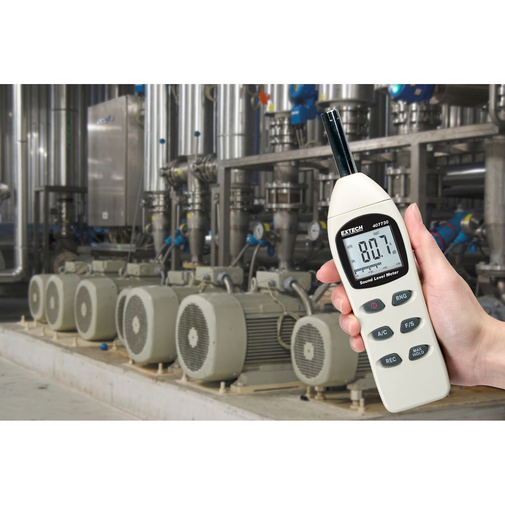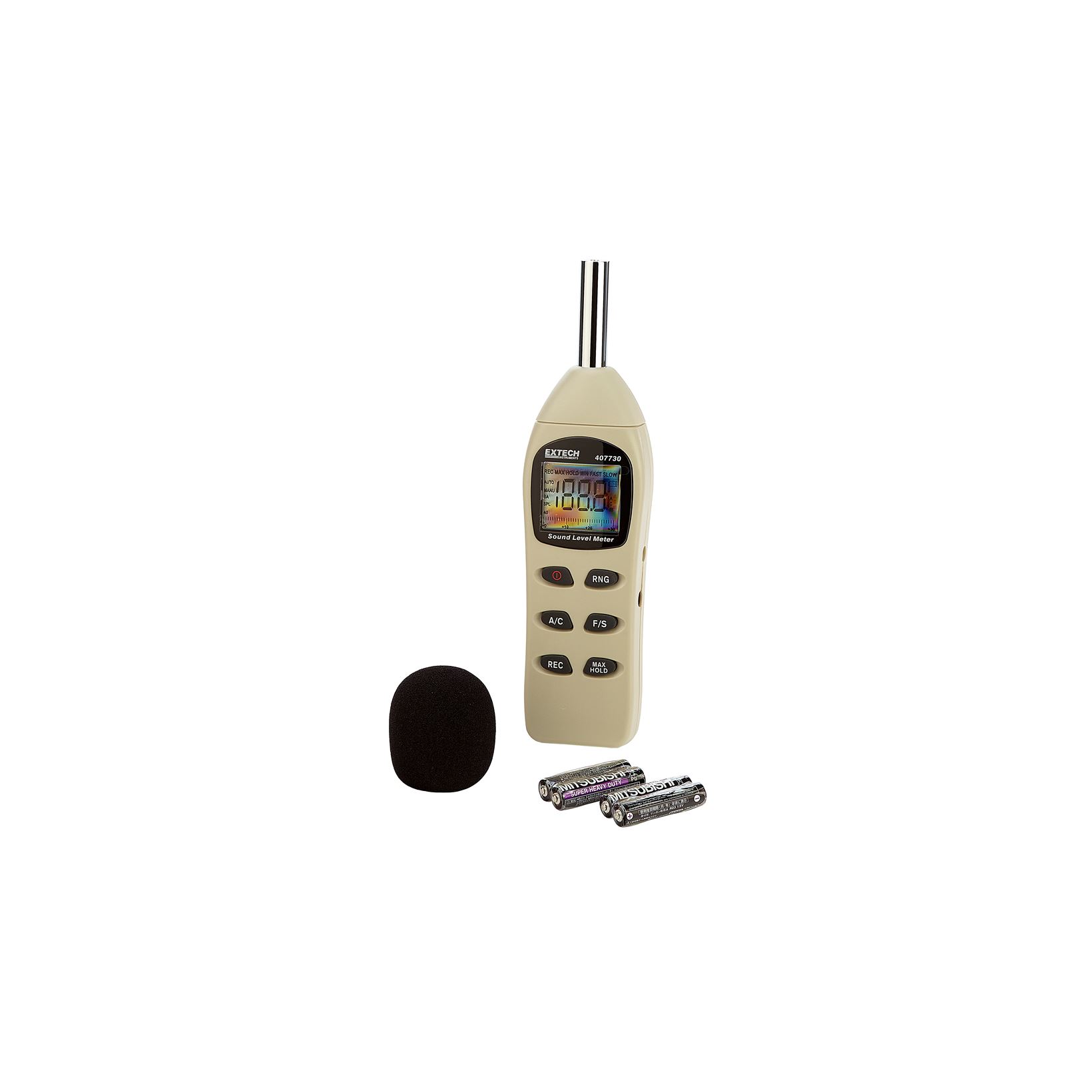 Extech 407730 digitale geluidsniveau meter wordt toegepast o.a. bij het installeren van audio-en alarmsystemen, certificering en vermindering van productgeluid. Extech 407730 meet tussen de 40 en 130 dB met een nauwkeurigheid van 2 dB en een resolutie van 0,1 dB en beschikt over lcd-scherm(2000-count) met een analoge staafdiagram. Aanvullende functies zijn o.a. A- of C-weging, Max Hold en Max/Min-registratie , AC-analoge uitgang, Max/Min, automatische uitschakeling, 0,5" (12,7 mm) condensatormicrofoon, snel/traag responstijd en mogelijkheid voor statief montage.