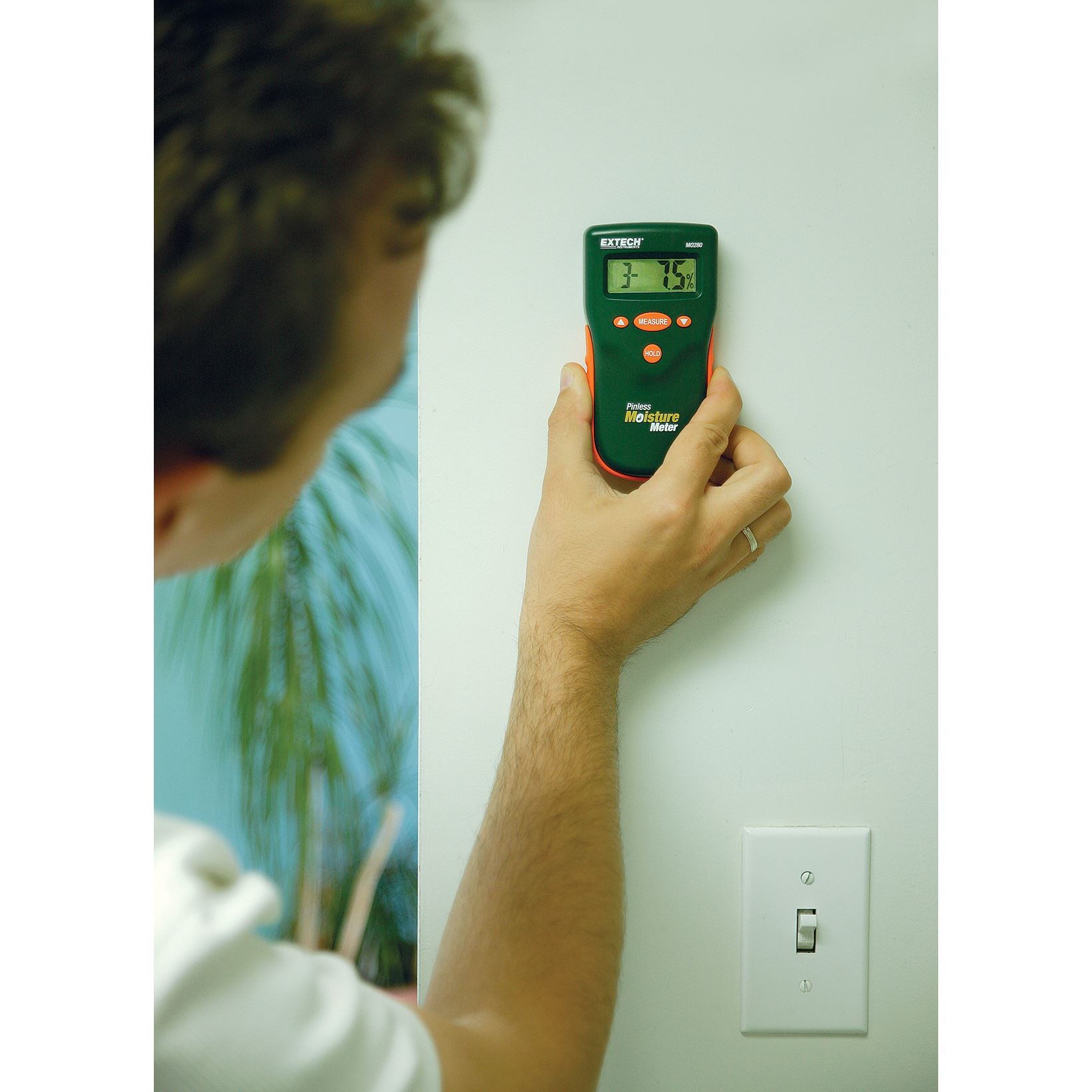 Extech MO280 biedt niet-invasieve vochtmetingen van 0.0 tot 100.0 met een resolutie van 0.1 in hout en andere bouwmaterialen zonder vrijwel geen oppervlakteschade. Deze vochtmeter kan selecteren uit 10 houtsoorten en meet bereiken. Met een meetdiepte tot 22 mm onder het oppervlak gebruikt de Extech MO280 elektromagnetische technologie om snel het vochtgehalte in bouwmaterialen aan te geven. Het LCD toont het percentage vocht in het hout of ander materiaal dat wordt getest. De Extech MO280 beschikt ook over een automatische interne test en kalibratie en een lage batterijindicatie.