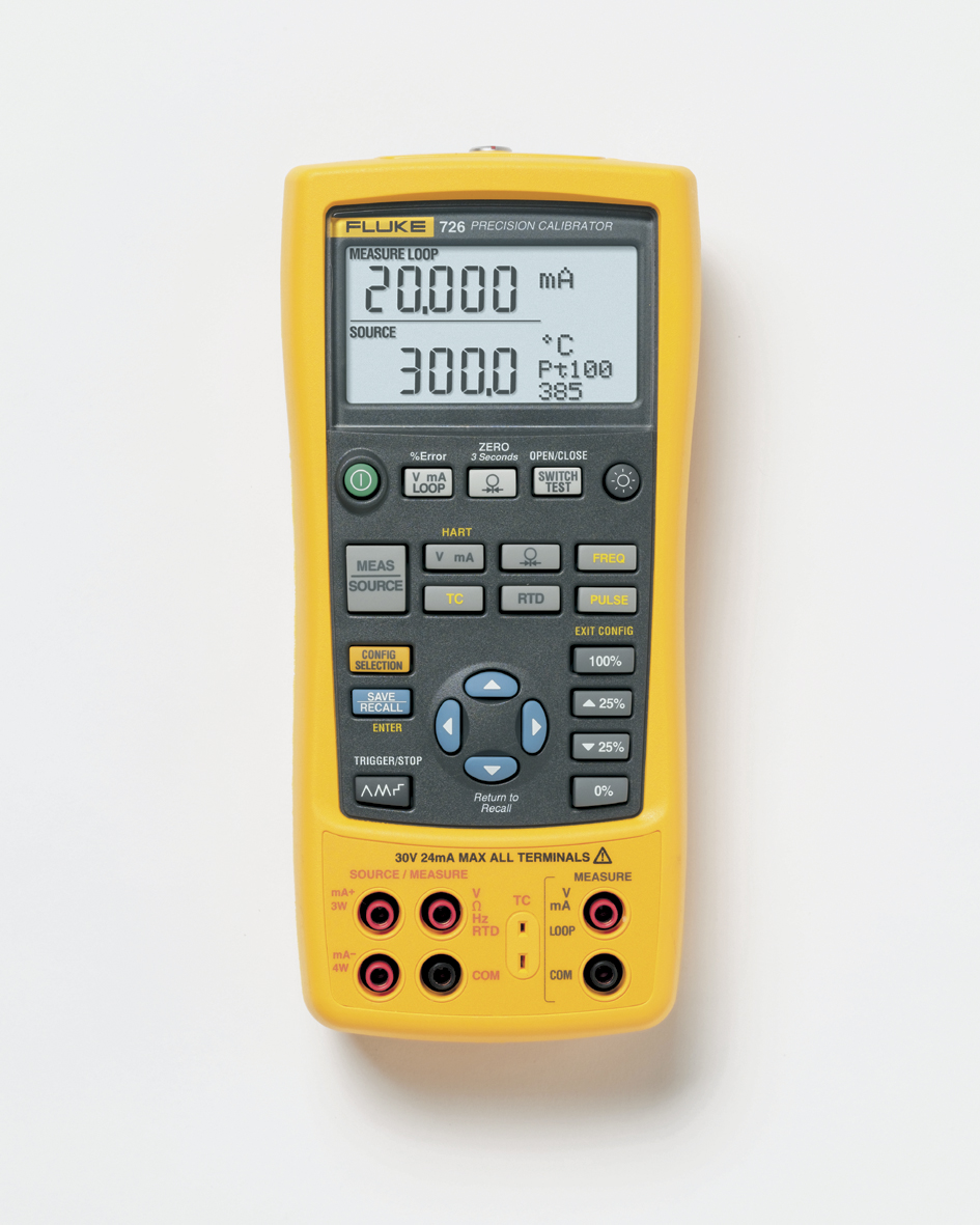 Met de Fluke 725 multifunctionele proceskalibrator bij de hand kunt u nagenoeg alle procesparameters meten en kalibreren. Meet en genereer stroom (mA), spanning, temperatuur (RTD's en thermokoppels), frequentie, weerstand en druk, met behulp van optionele drukmodules..
