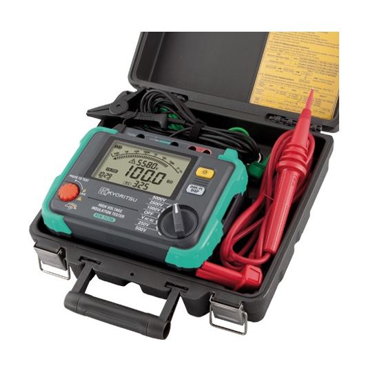 De Kyoritsu 3125B is een 5kV Isolatieweerstandmeter met testspanningen van 250V, 500V, 1000V, 2500V en 5000V. Ook kan de meter de Polarisatie Index (PI) en Diëlektrische Absorptie Ratio (DAR) in kaart brengen. Verder beschikt de meter over een AC/DC spanningsmeting.