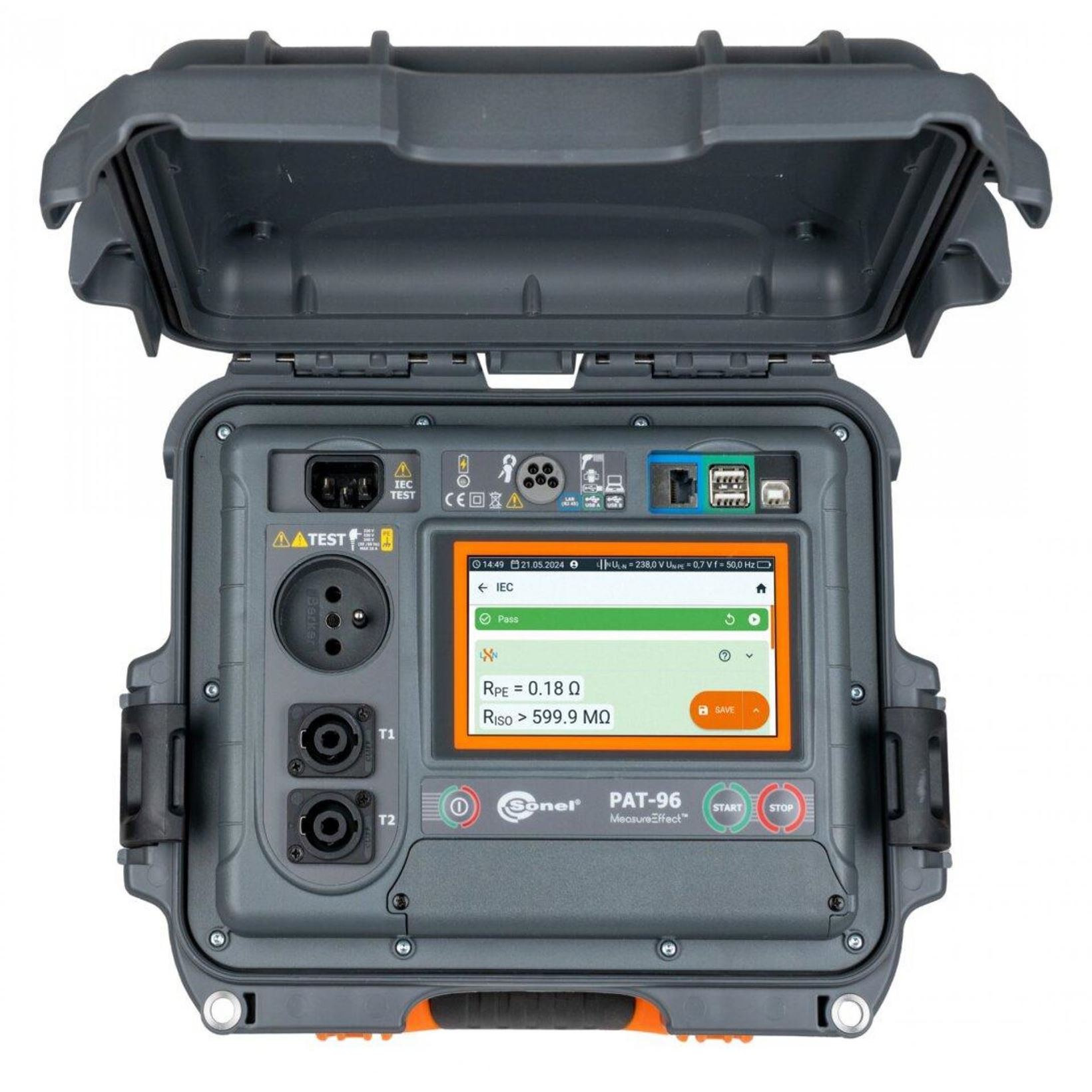 De Sonel PAT-96 geavanceerde meter is perfect voor controlemetingen van lasapparaten en andere elektrische apparaten. Het instrument maakt het mogelijk om parameters te meten die van invloed zijn op het veilige gebruik van de apparatuur, zoals weerstand van beschermende geleiders, isolatieweerstand, continuïteit van verbindingen, lekstromen, vermogen, aardlekschakelaar en PRCD. Het PAT-96-model is speciaal bedoeld voor het testen van lasapparatuur volgens de norm EN 60974-4. Het maakt het onder andere mogelijk om de nominale spanning van lasapparatuur in onbelaste toestand, de lekstroom van het lascircuit en de primaire lekstroom te controleren.